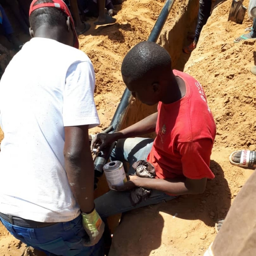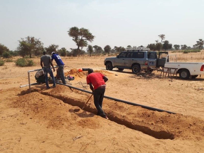 Im weiteren Verlauf wurden die Strom- und Wasserleitung verlegt. Auch eine Pumpenhaus mit einem Wasserbehälter wurden erstellt und im Dorf Wasserhähne installiert. Im März 2020 konnte der Dorfbevölkerung der Brunnen funktionstüchtig übergeben werden.